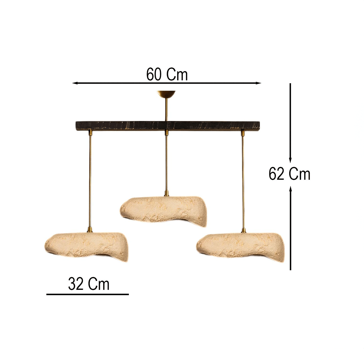 Karbon betonun modern ve güçlü dokusunu zarif tasarım çizgileriyle buluşturan avize, farklı sayılarda sarkıt kullanımıyla her mekâna kolayca adapte olur.