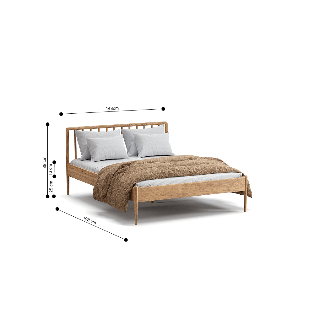 Her parçası titizlikle işlenmiş olan meşe iskeletli Lilium karyola, uzun yıllar boyunca dayanıklılığını koruyacak şekilde tasarlanmıştır.