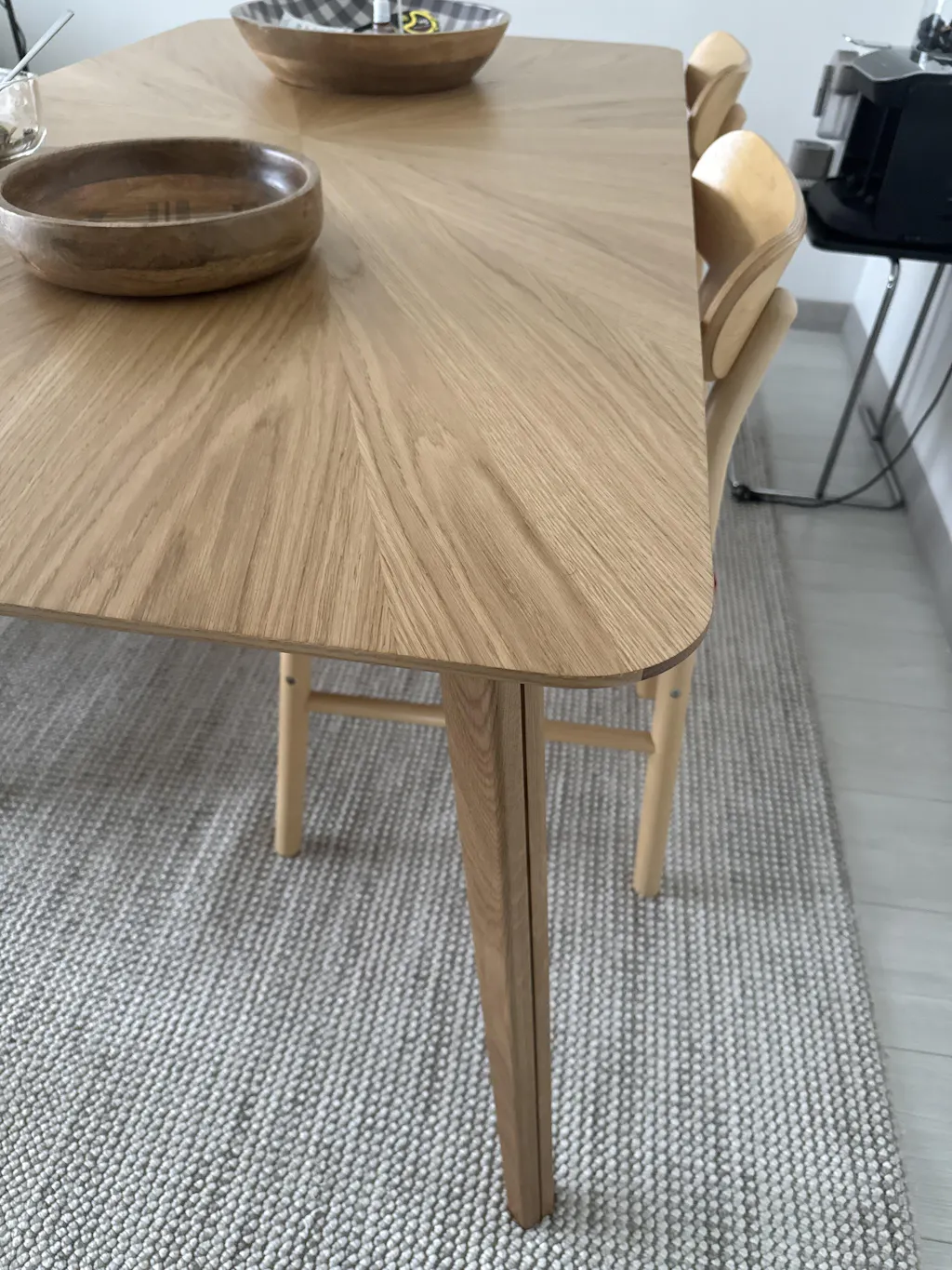 - Malzeme ve doku: ana malzeme olarak Amerikan Beyaz Meşe Doğal Kaplama ve Masif Karışımı; ayak yapısında Amerikan Beyaz Masif Meşe ve Meşe renk tonu.