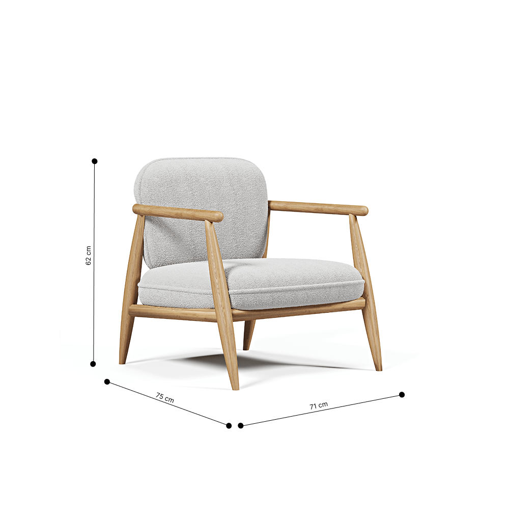 Senna Berjer'in masif doğal dokuyu, bukle kumaşı zarif bir şekilde birleştiriyor. Oturumundaki sünger ise, hem konforu hem de lüks görünümü destekleyerek, evinizi dönüştürmenize yardımcı oluyor. Meşe rengi iskeletiyle öne çıkan bu berjer, kalite ve dayanıklılığı bir arada sunan bir mobilya parçasıdır. Doğal masif dokusu ve sağlam yapısıyla dikkat çeken bu berjer, uzun yıllar boyunca kullanımınıza uygun bir seçimdir. Yumuşak kumaşlarıyla konforlu oturuş sunarken, iskeletiyle de sağlam bir destek sağlar. Şık tasarımıyla her türlü dekorasyon tarzına uyum sağlayan bu berjer, yaşam alanınıza doğal bir zarafet katarken, konforlu bir dinlenme alanı sunar.