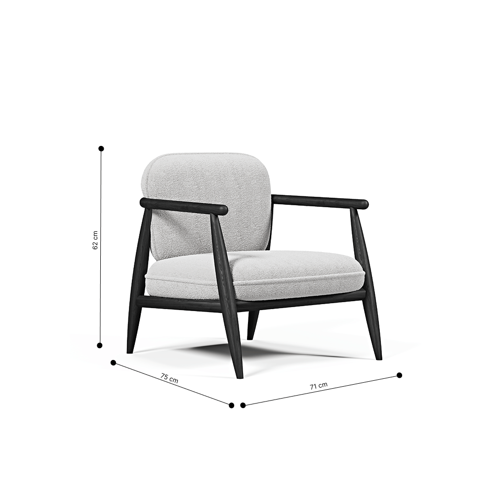 Senna Berjer'in masif doğal dokuyu, bukle kumaşı zarif bir şekilde birleştiriyor. Oturumundaki sünger ise, hem konforu hem de lüks görünümü destekleyerek, evinizi dönüştürmenize yardımcı oluyor.
